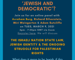 IJV EVENT: CAN ISRAEL BE BOTH ‘JEWISH AND DEMOCRATIC’? THE ISRAELI NATION STATE LAW, JEWISH IDENTITY & THE ONGOING STRUGGLE FOR PALESTINIAN RIGHTS